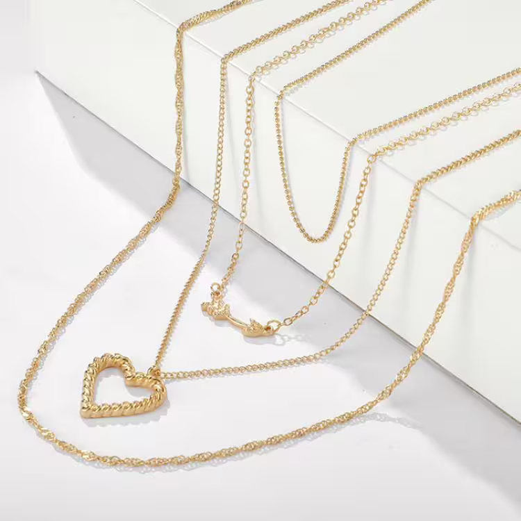 ❰ 鏤空愛心箭羽×四層項鍊 ❱