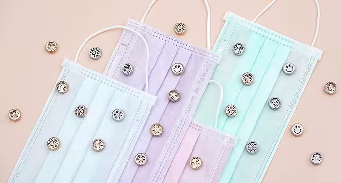 讓防疫造型加分的,除了眼妝之外,耳環也是重要的角色;除此之外,在口罩上來個「吸磁式」的裝飾小物,讓造型與眾不同。