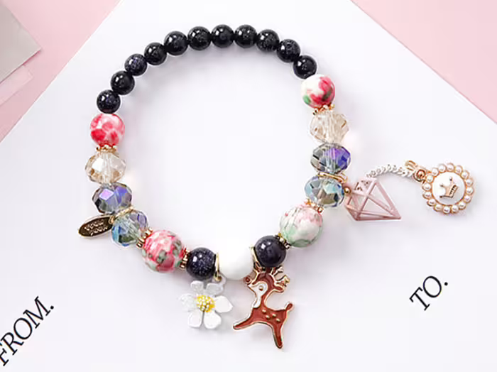 閱讀全文▶名稱/鑽石小鹿花朵×固定式琉璃串珠手鍊