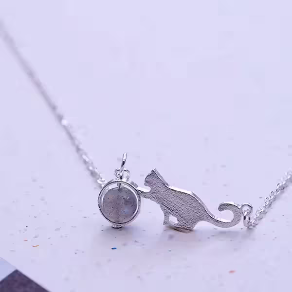 ▶尺寸/貓1.8×1cm,月光石0.8cm,鍊長39cm、延長鍊5cm