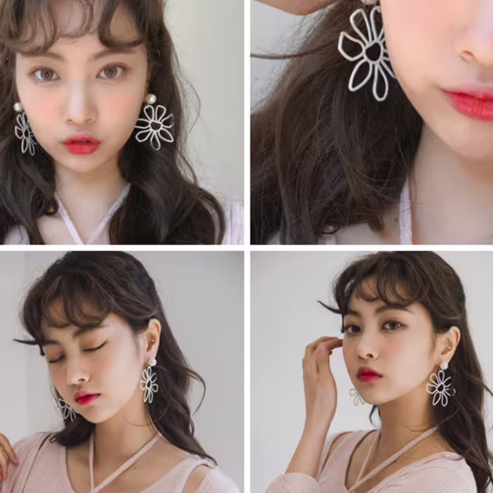 珍珠鏤空大花瓣×吊墜耳環×潔白-第4張