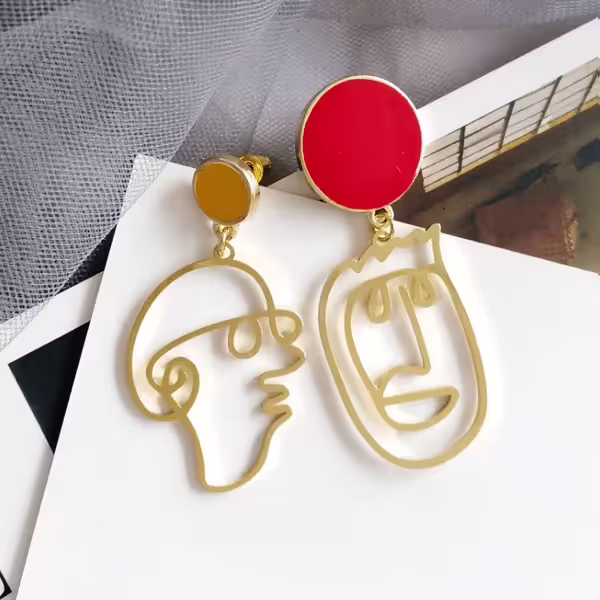▶名稱/男人的臉撞色簡筆畫×不對稱吊墜耳環