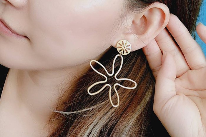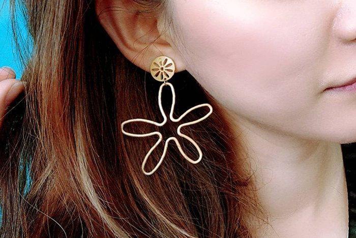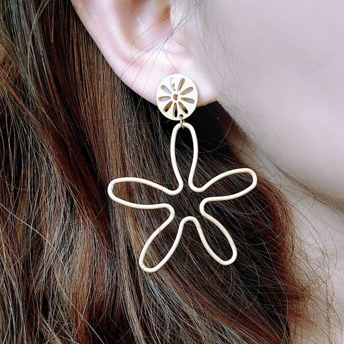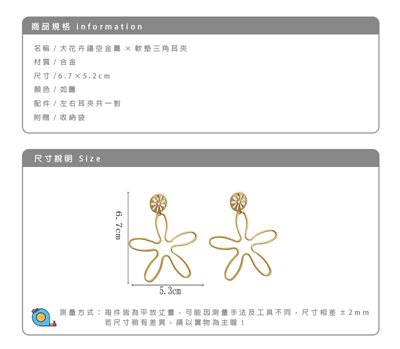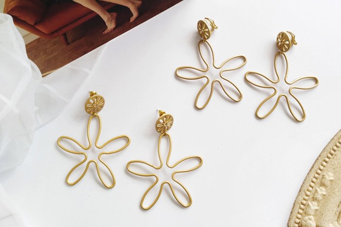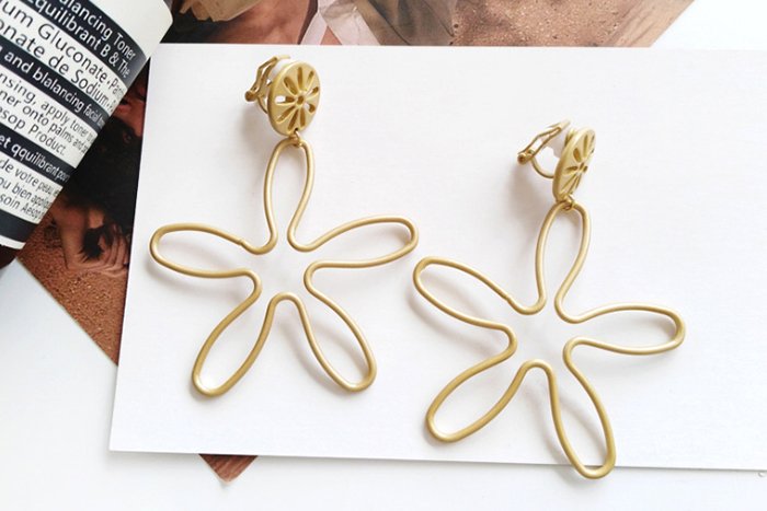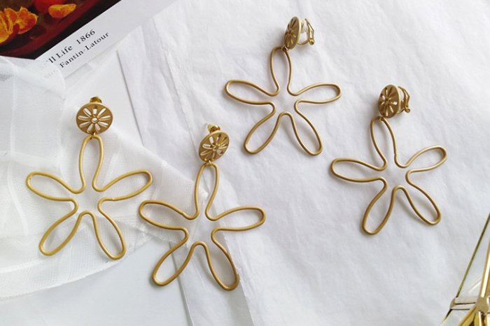 大花卉鏤空金屬×軟墊三角耳夾-第5張