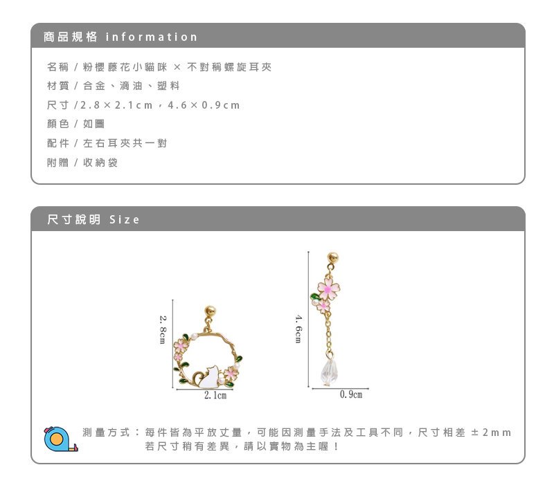 粉櫻藤花小貓咪×不對稱螺旋耳夾-第6張