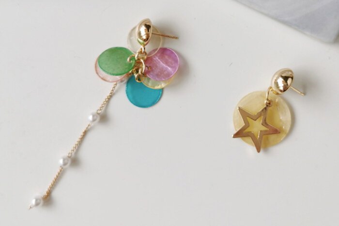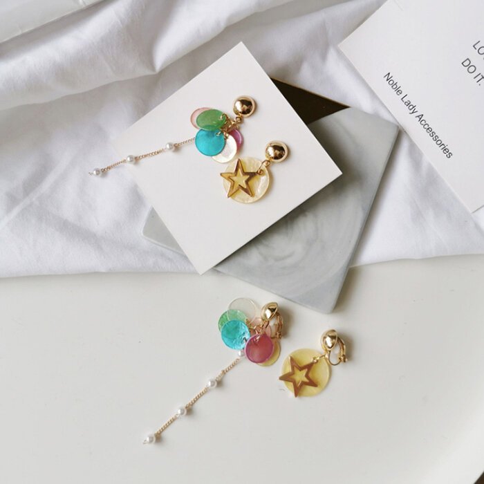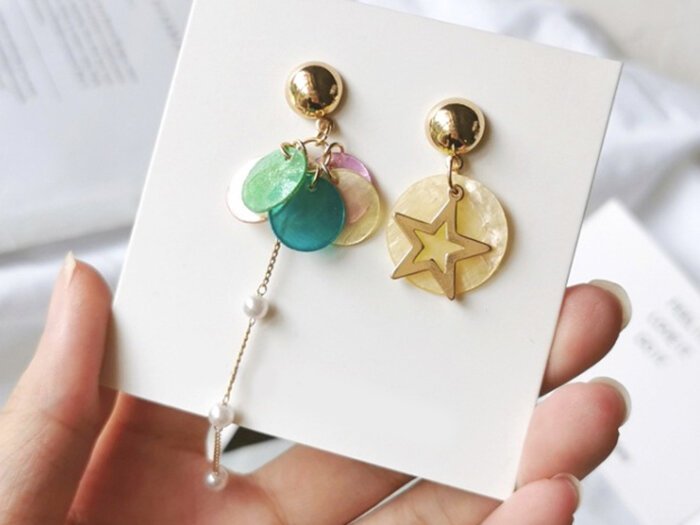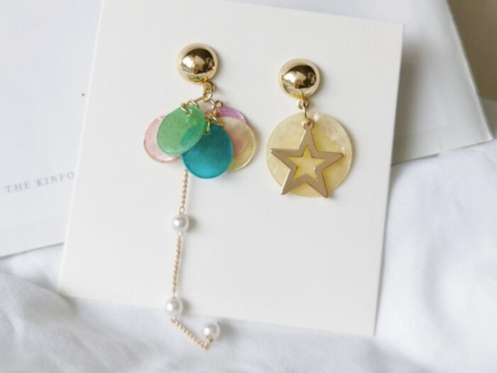 炫彩貝殼紋星星×不對稱吊隊耳環-第1張
