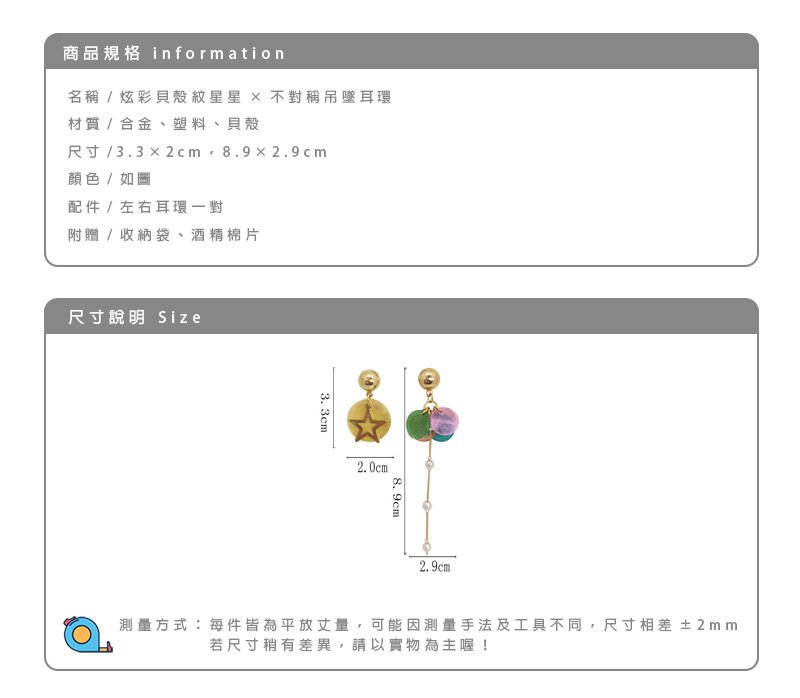 炫彩貝殼紋星星×不對稱吊隊耳環-第4張