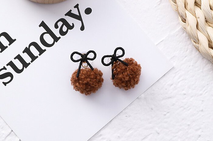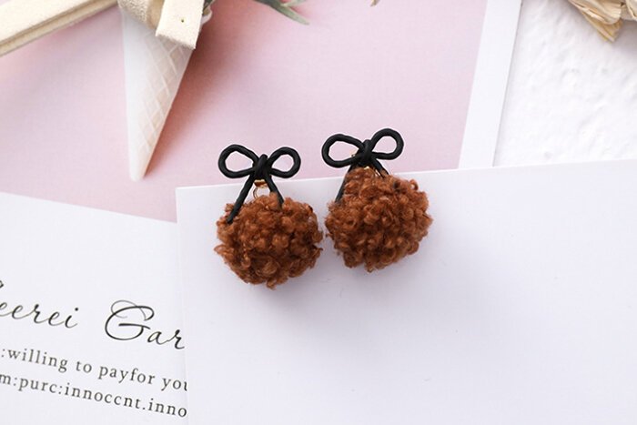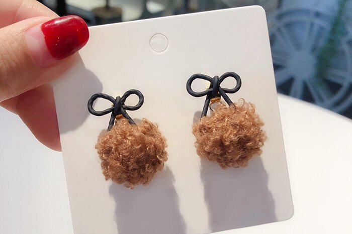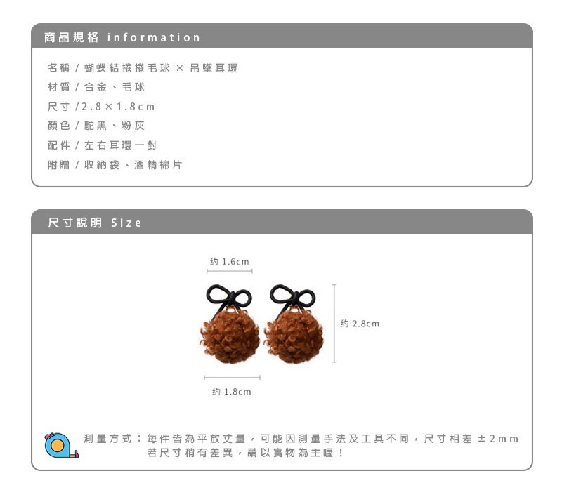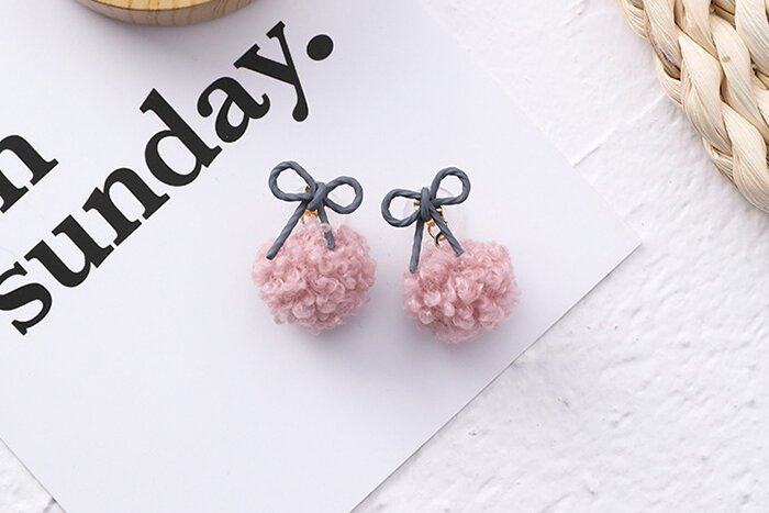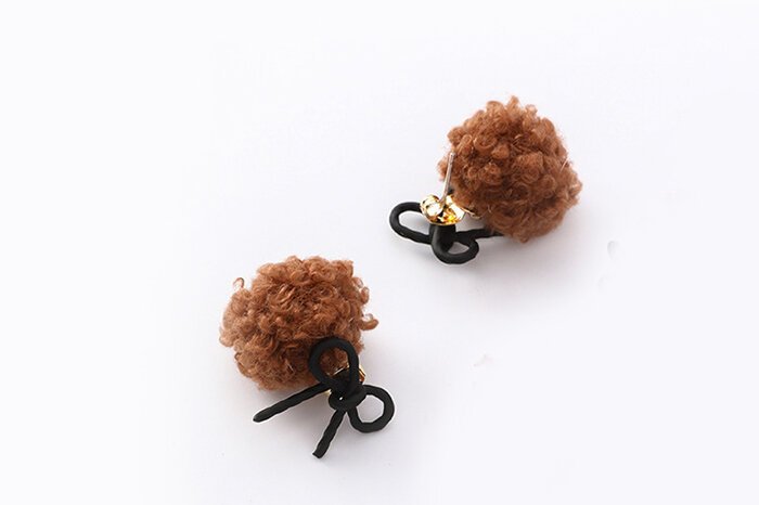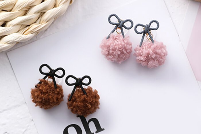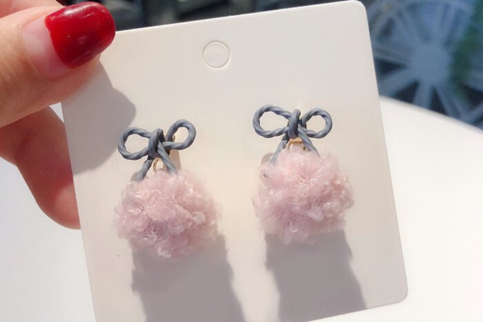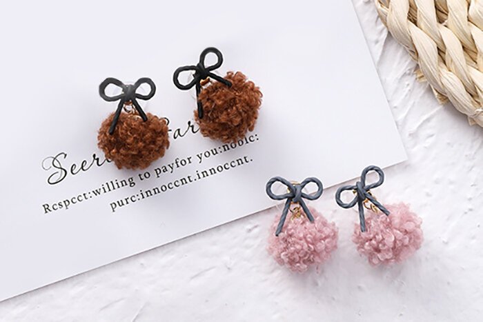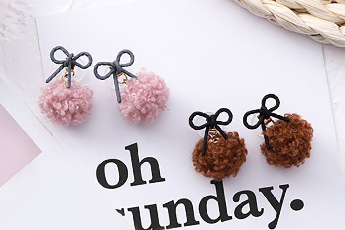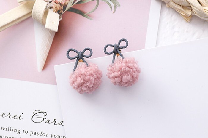 - 蝴蝶結捲捲毛球×吊墜耳環×共二色
