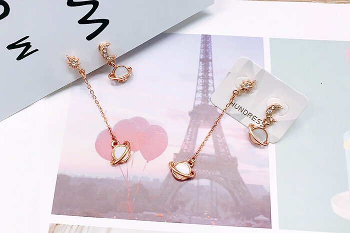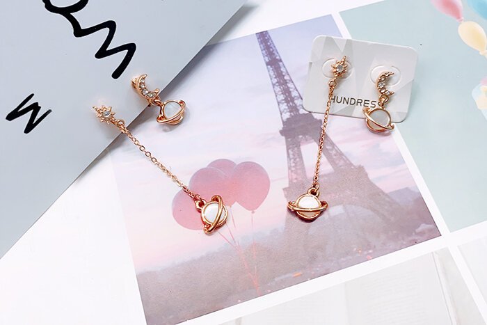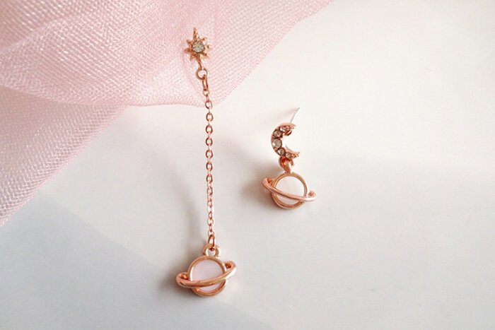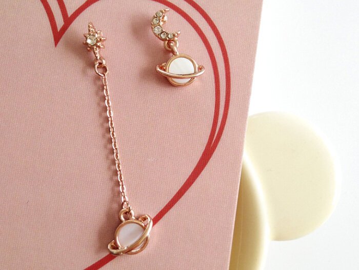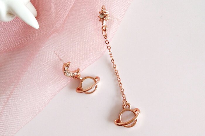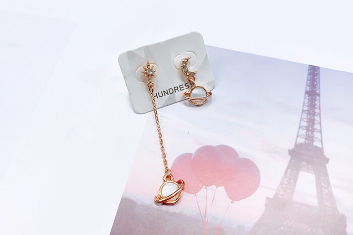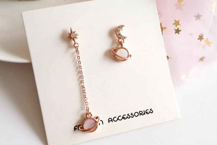 月亮光芒星球×不對稱吊墜耳環-第1張