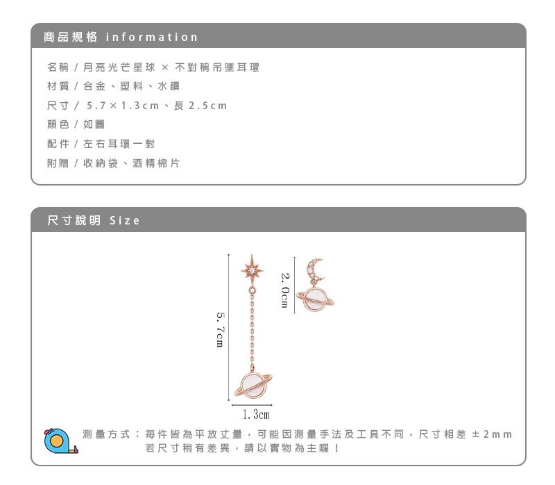 月亮光芒星球×不對稱吊墜耳環-第6張
