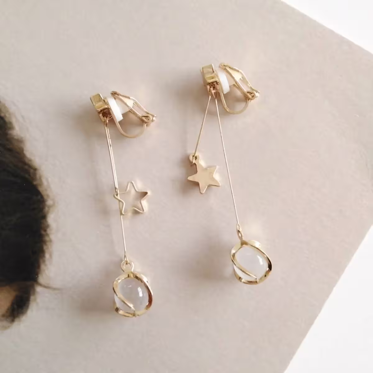 ▶名稱/星星琉璃貓眼石×不對稱三角耳夾