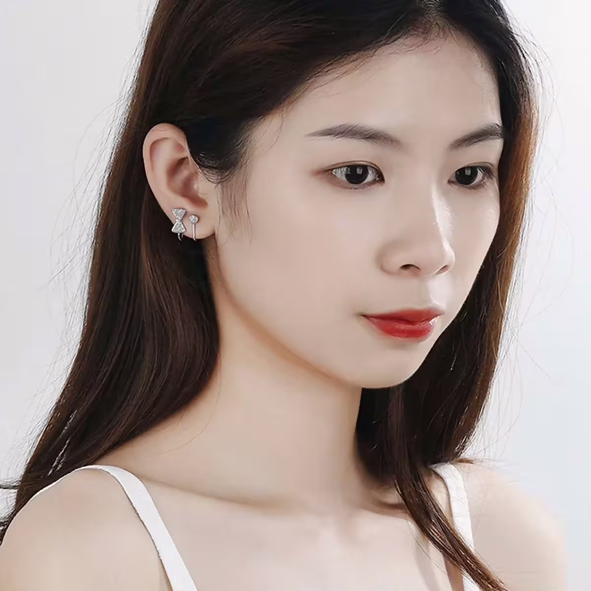 ▶名稱/蝴蝶結圓晶鑽×U型耳夾