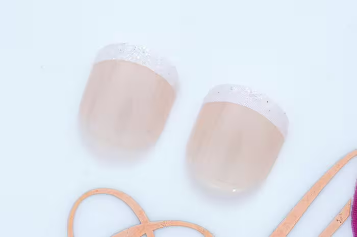 5. 選擇尺寸適合的果凍膠,貼在指甲上,靠近指甲根部位置。