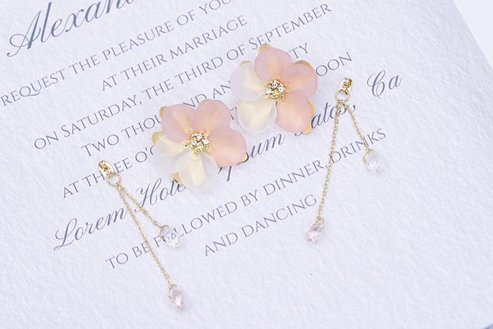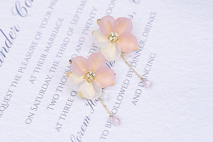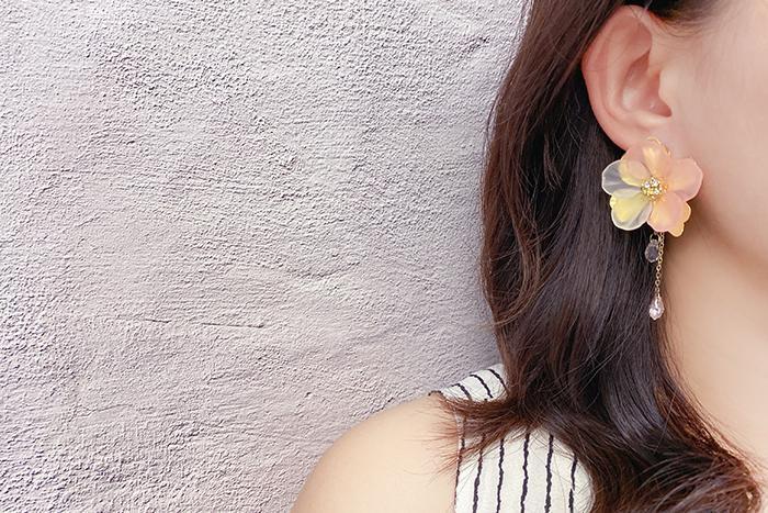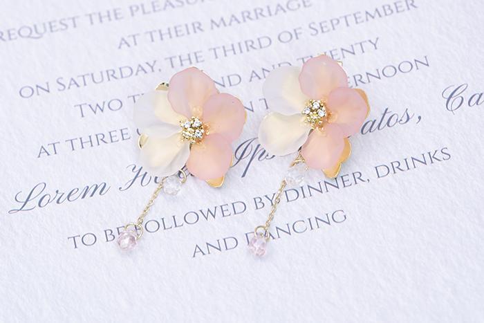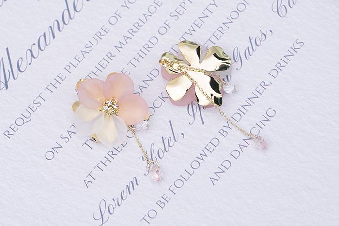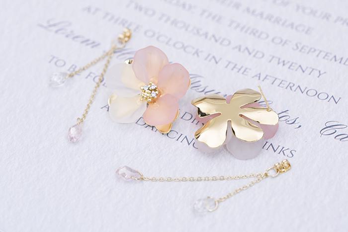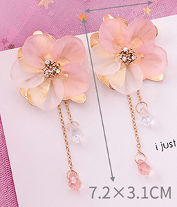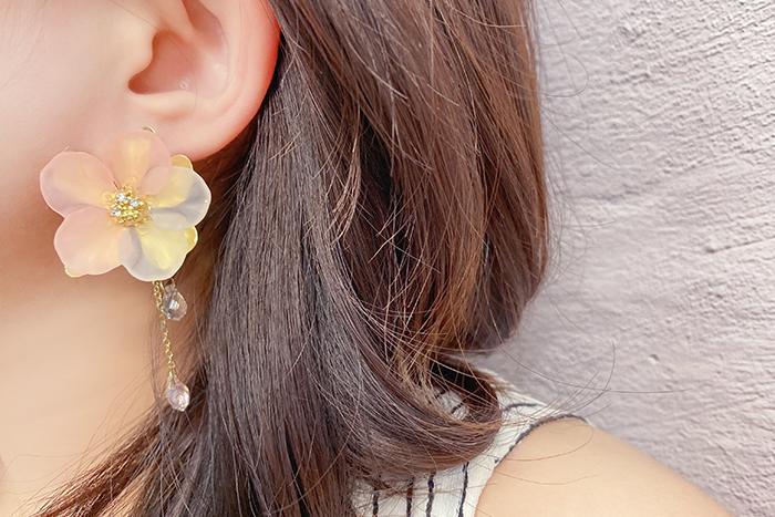 ▶名稱/粉白雙色金屬花朵×後掛式吊墜耳環