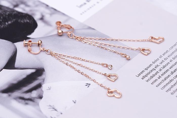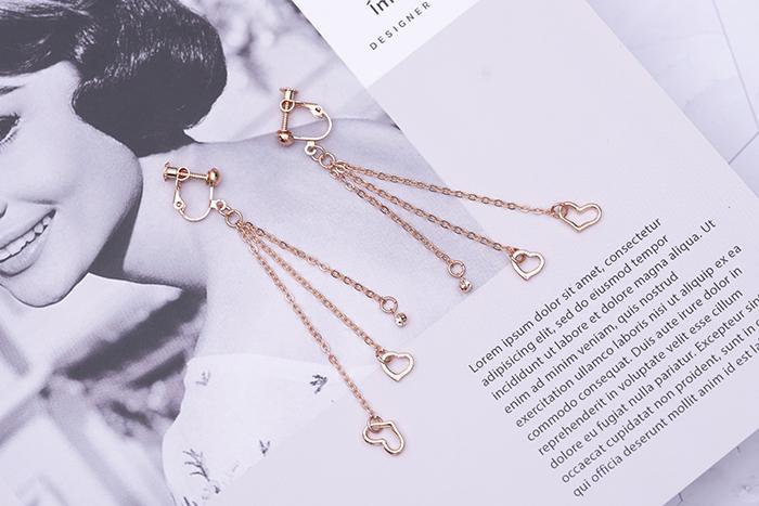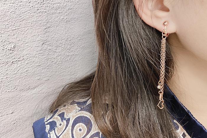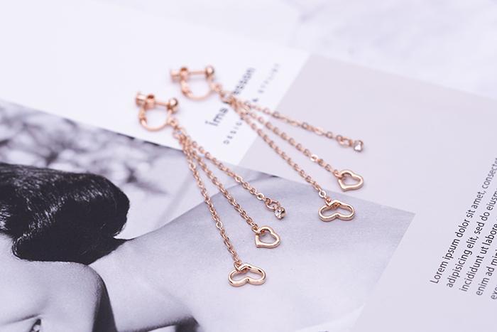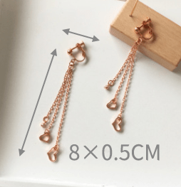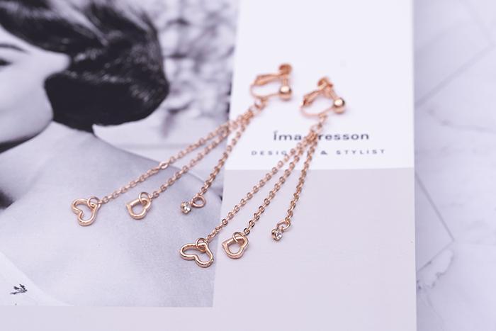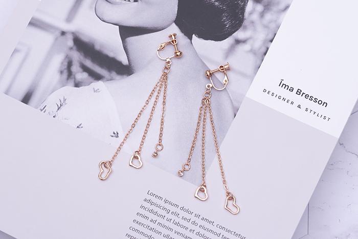 ▶名稱/玫瑰金愛心流蘇×螺旋耳夾