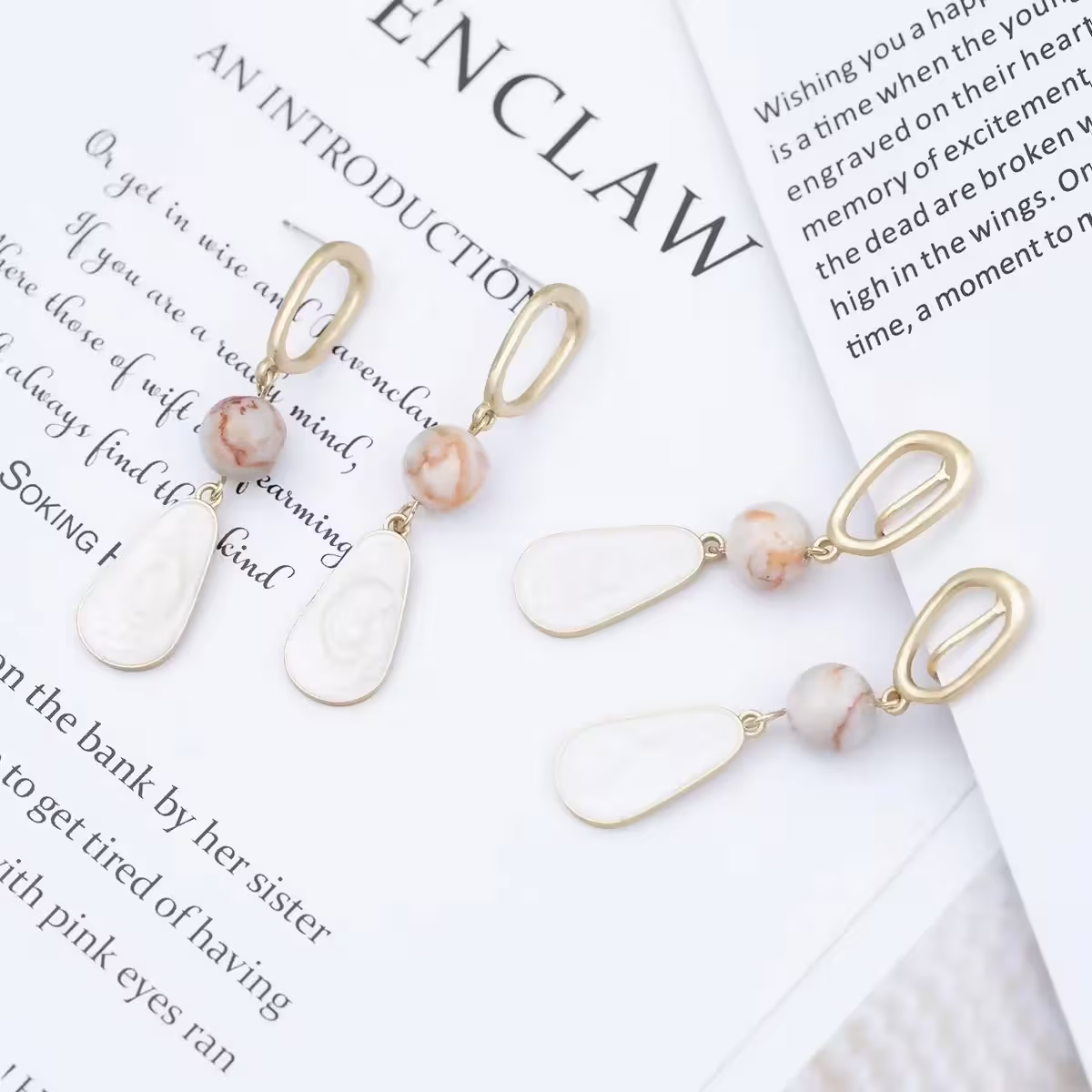 ▶名稱/乳白水滴圓石珠珠×吊墜耳環