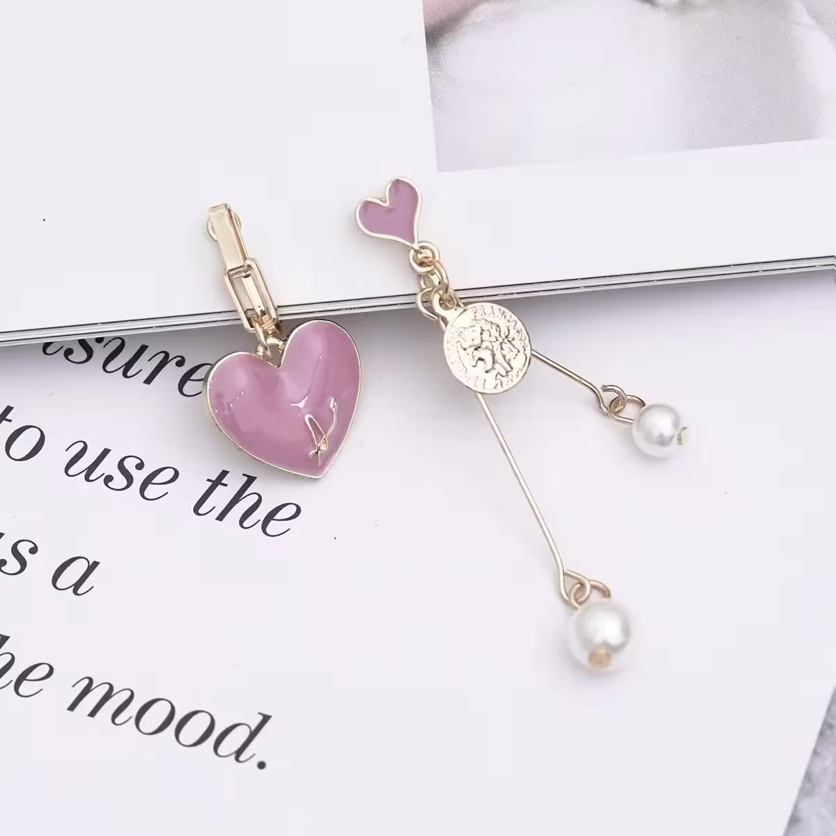 ▶名稱/粉紅愛心希臘古幣×不對稱螺旋耳夾
