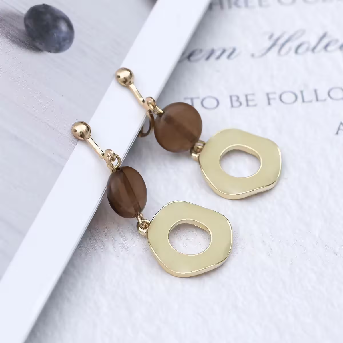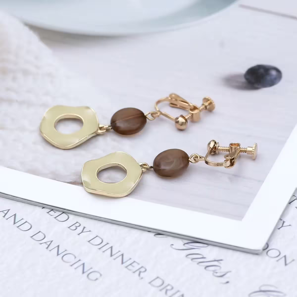 波浪圓環米咖撞色×螺旋耳夾-第1張