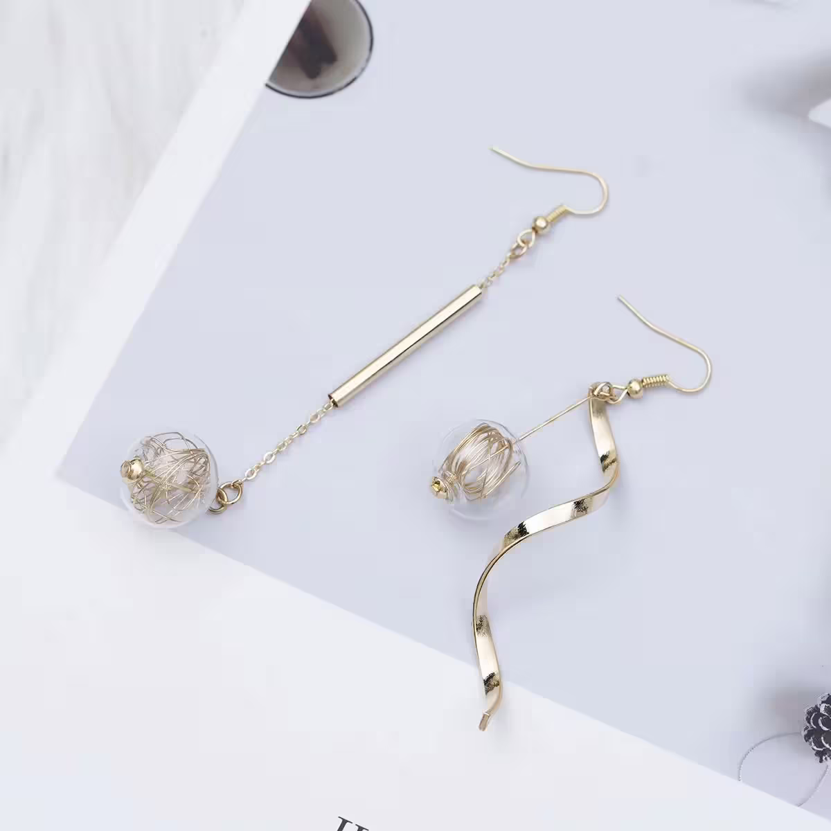 ▶名稱/螺旋金屬玻璃球×不對稱吊墜耳勾