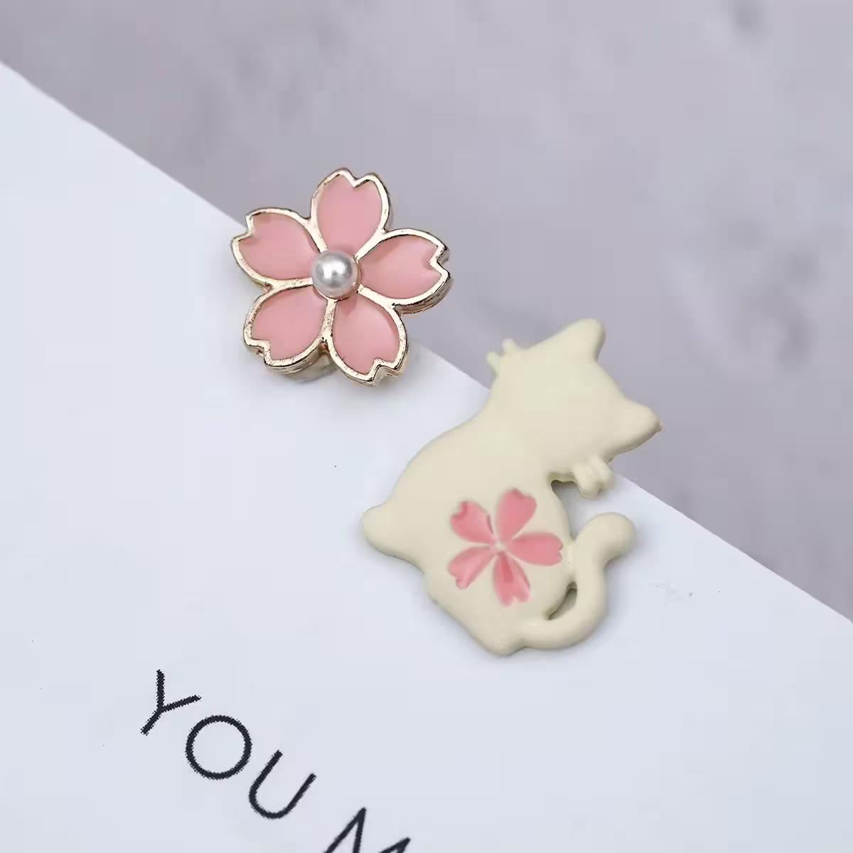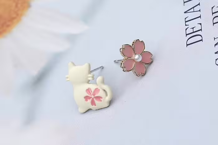 ▶名稱/白貓粉櫻花卉×不對稱耳環