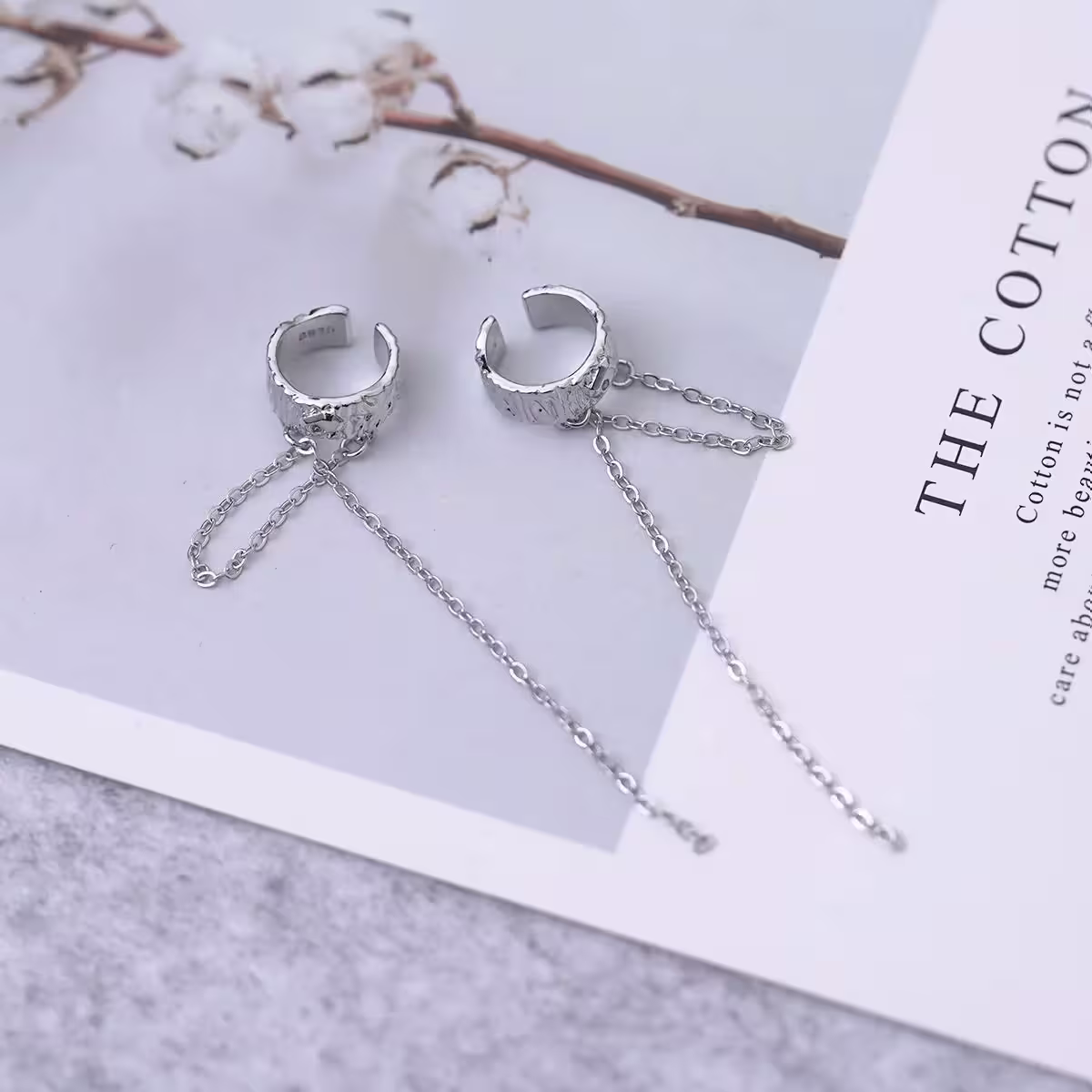 ▶名稱/皺折肌理垂鍊×U型耳骨夾