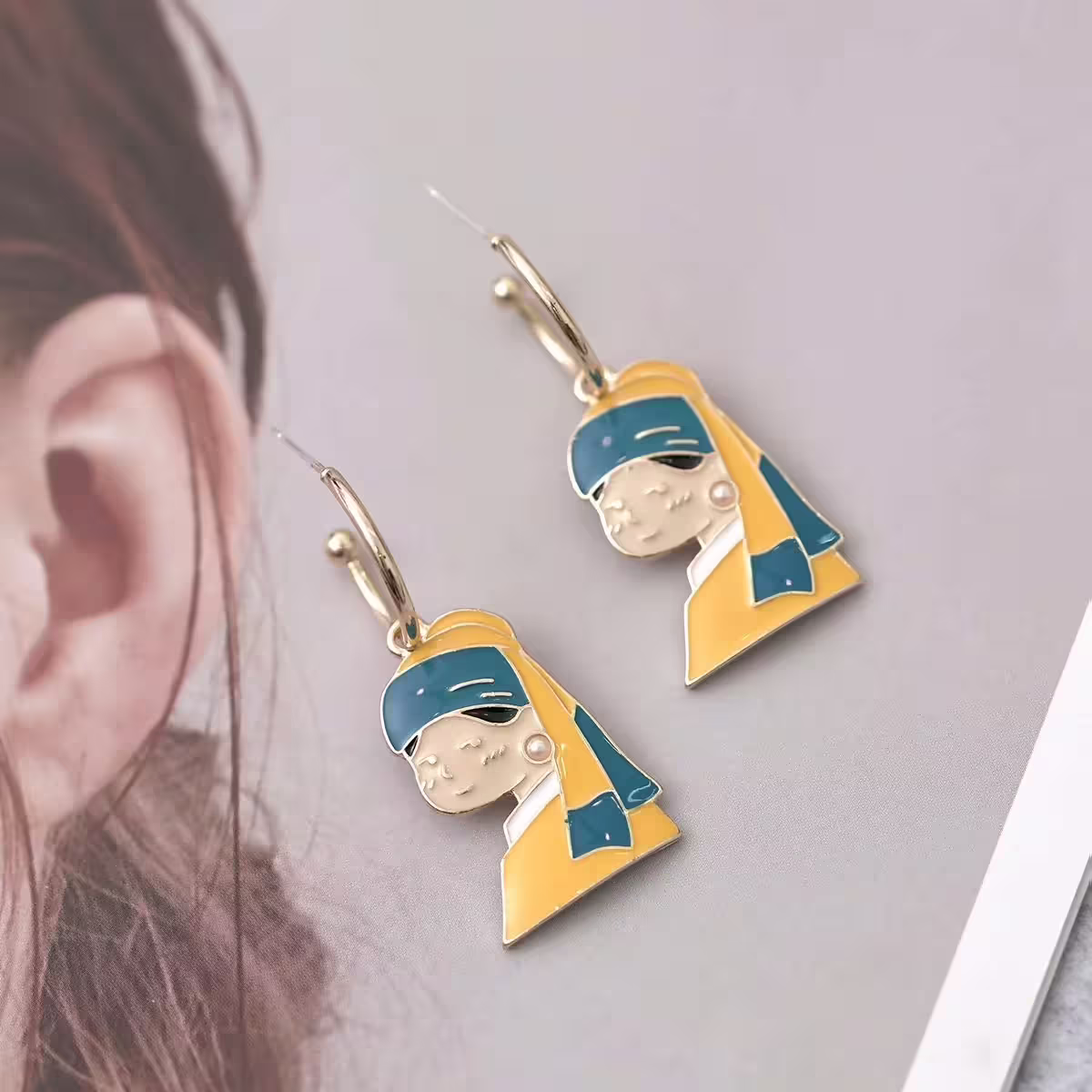 ▶名稱/戴珍珠耳環的卡通少女×吊墜耳環