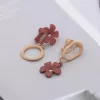 ▶名稱/磚紅小花紐結圓環×不對稱螺耳夾