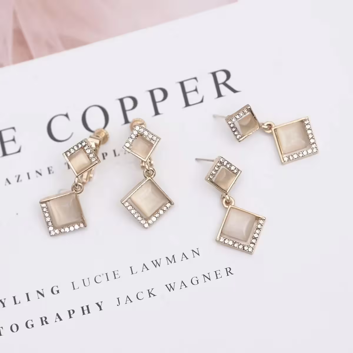 ▶名稱/雙菱形晶鑽貓眼石×螺旋耳夾
