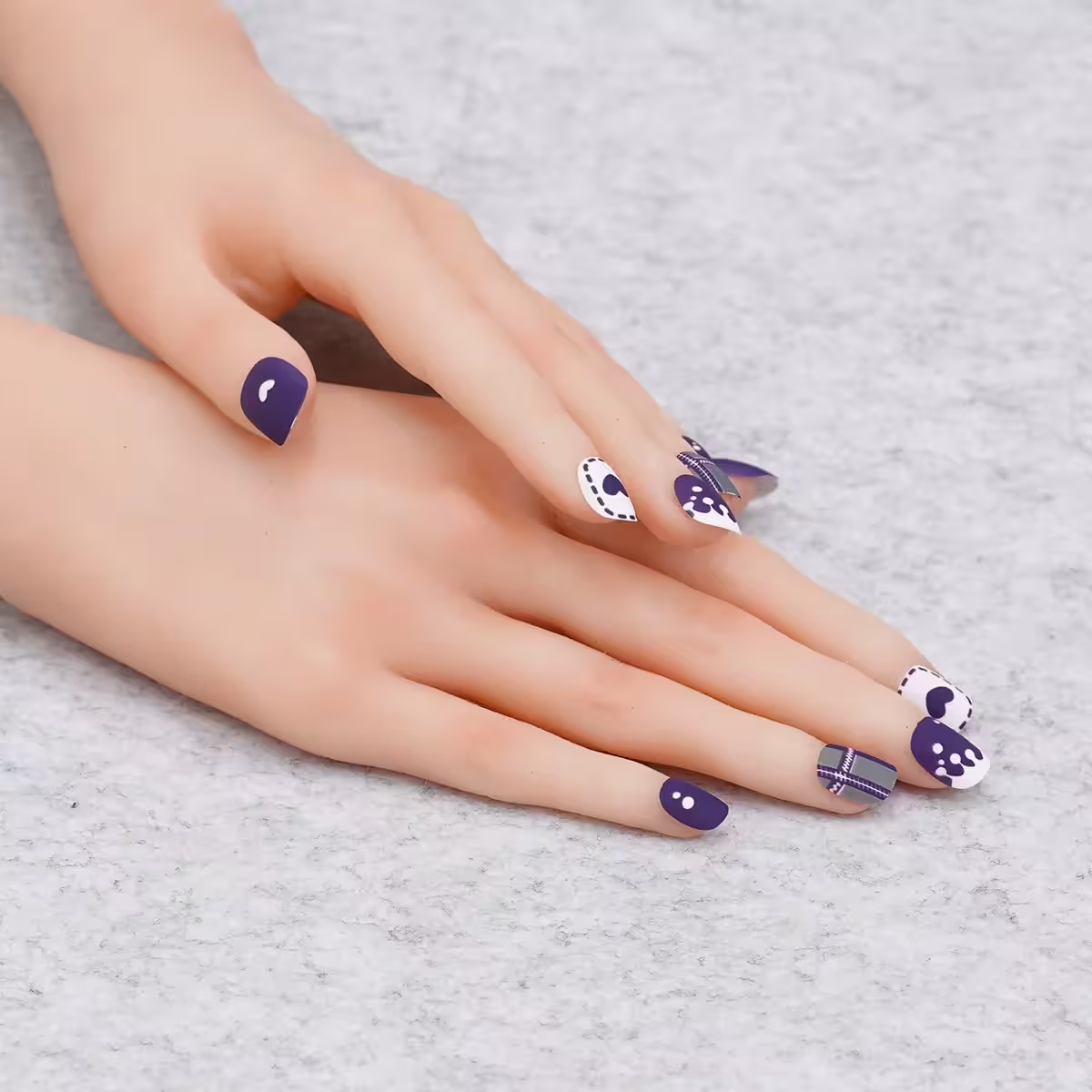 紫心牛奶灰格紋霧面×穿戴式手指甲片×二十四入