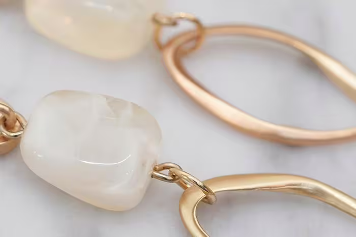 ▶名稱/撞色玉石紋不規則圓環×吊墜耳環×共二色