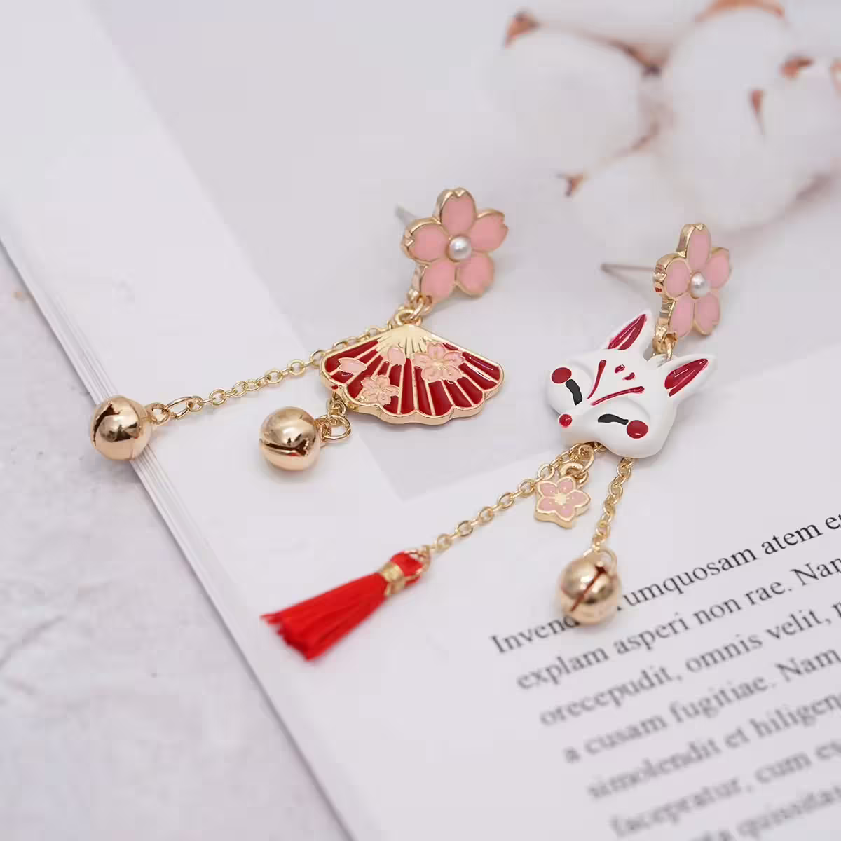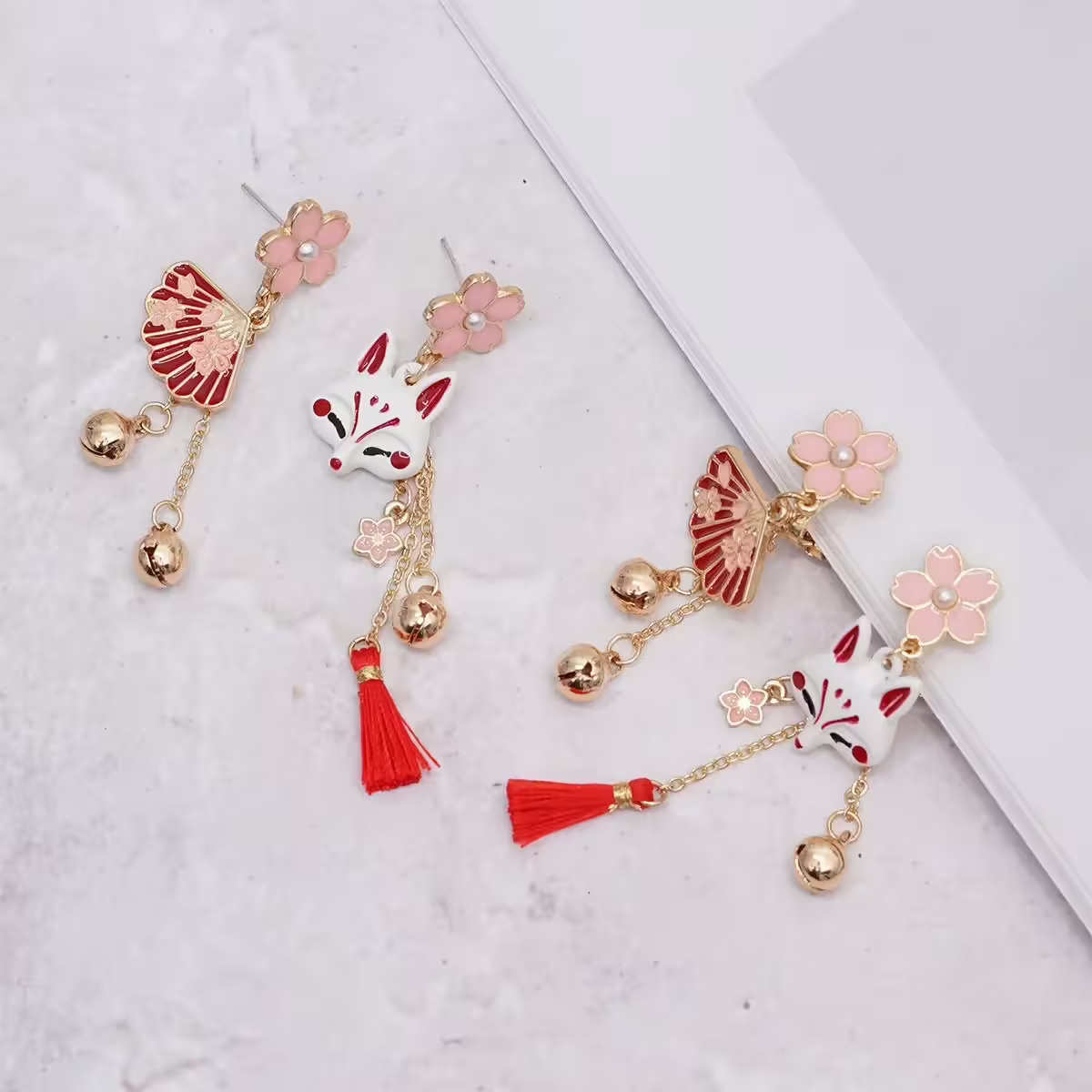 ▶名稱/櫻花摺扇小狐狸×不對稱吊墜耳環