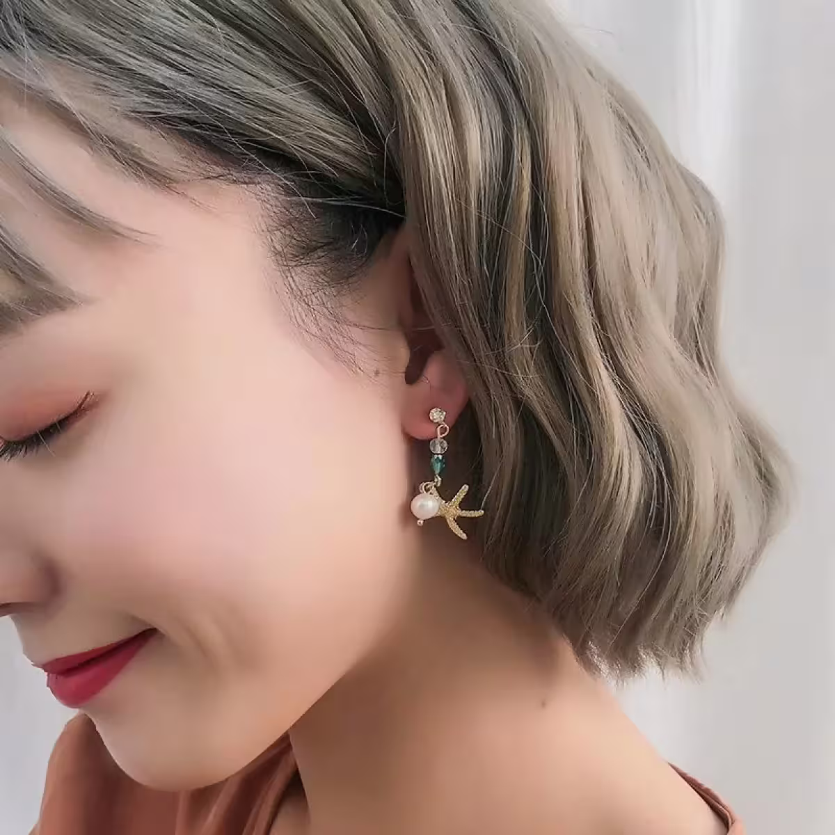 ▶名稱/海洋風海星貝殼×不對稱螺旋耳夾