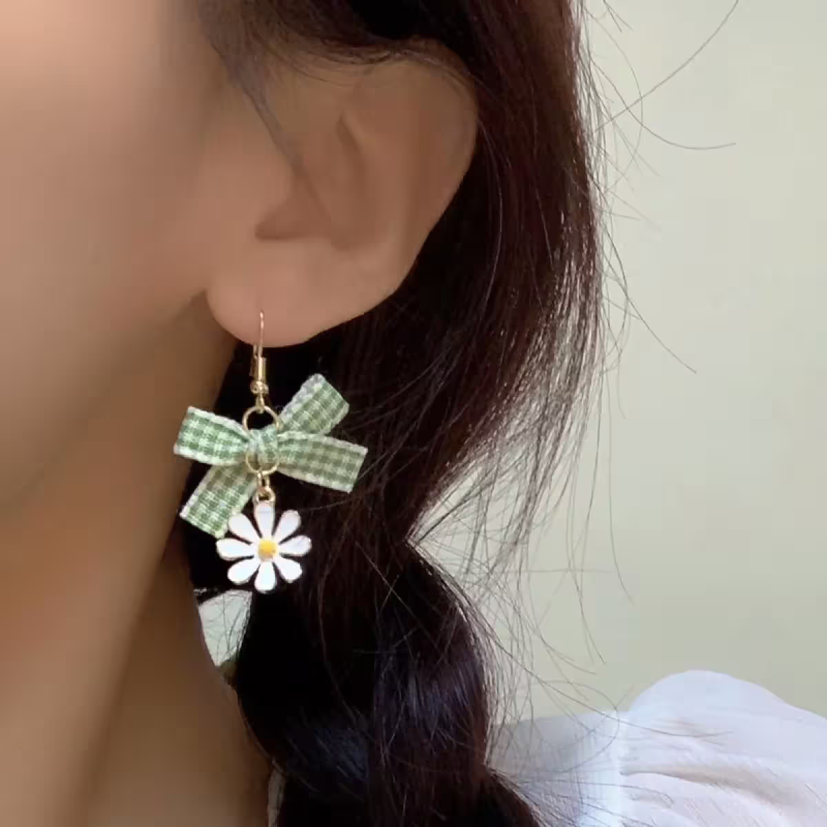 ▶名稱/綠格蝴蝶結小雛菊×吊墜耳勾