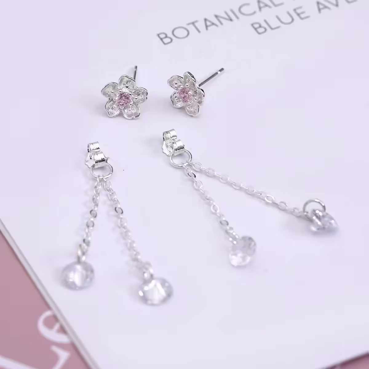 ▶名稱/粉櫻垂鑽×後掛式耳針