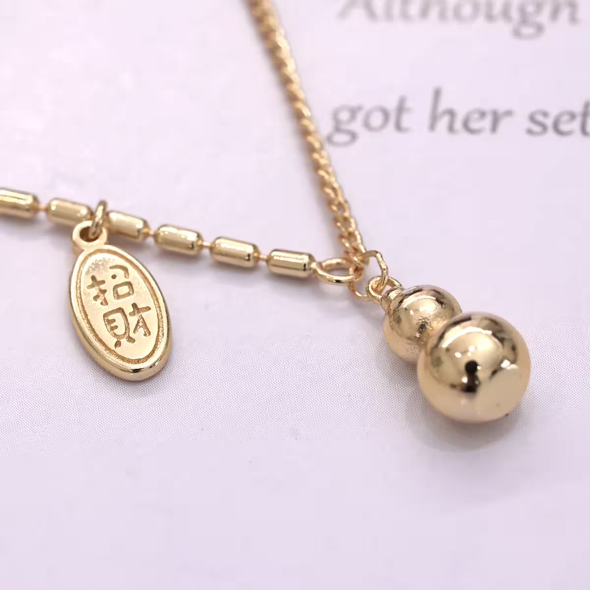 ▶尺寸/鍊長19cm,延長鍊6cm,招財1.2cm,葫蘆1.4cm