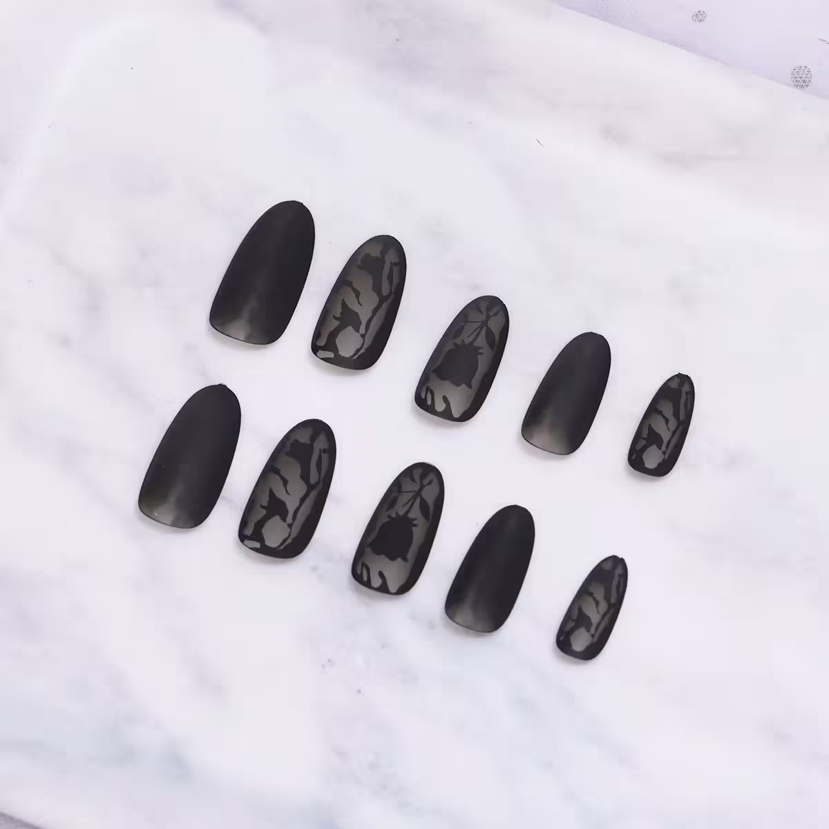 ▶名稱/黑玫瑰蕾絲霧面×穿戴式手指甲片×二十四入