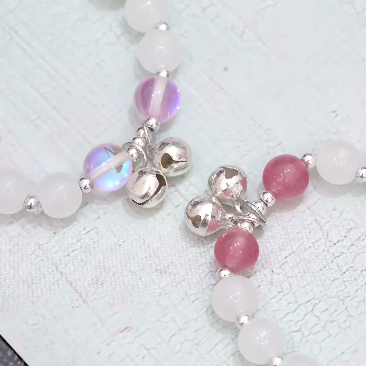 ▶名稱/冰透感水晶鈴鐺×固定式串珠手鍊×共二色