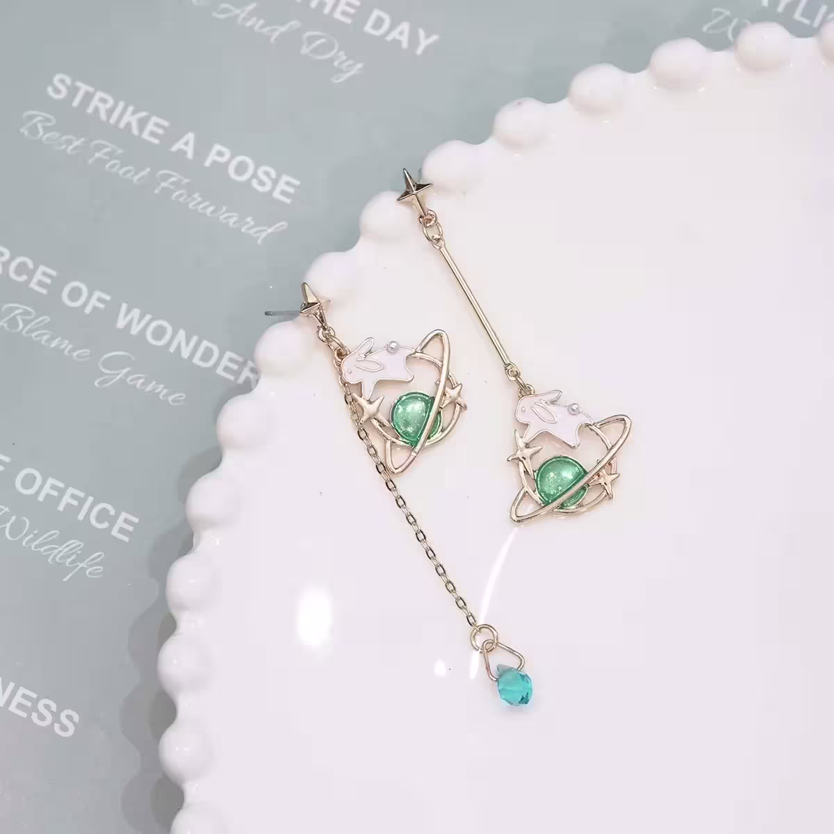 ▶名稱/月兔摘星×不對稱吊墜耳環