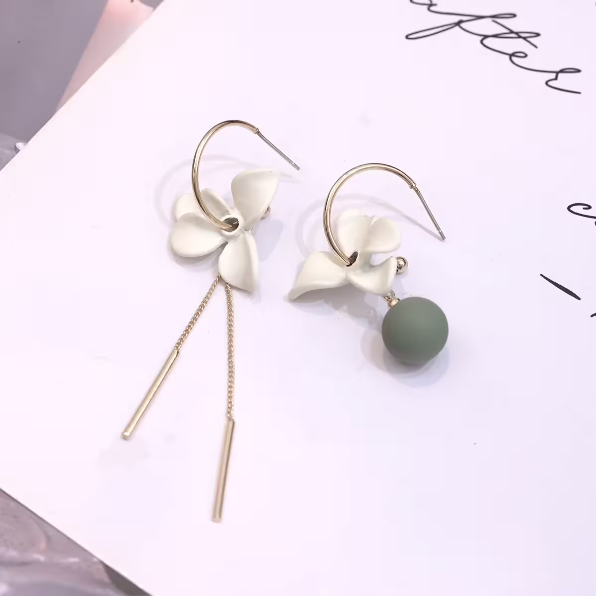 ▶名稱/法式夏日白花×不對稱吊墜耳環