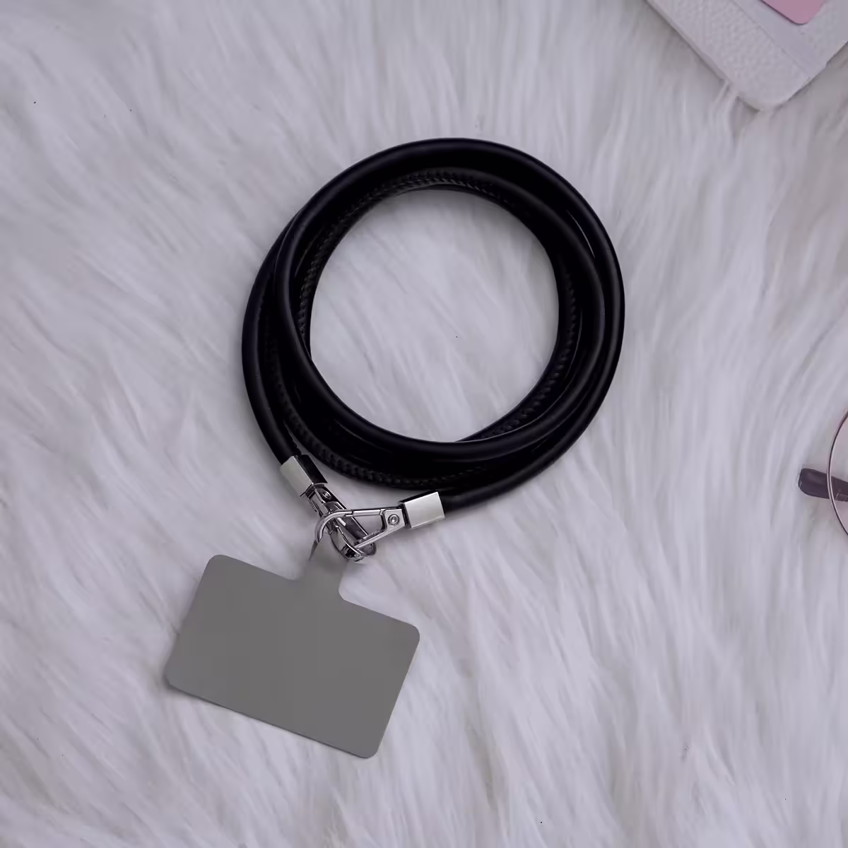▶名稱/單色簡約皮革×手機斜背雙勾掛繩×黑色