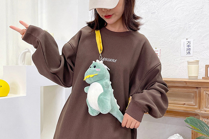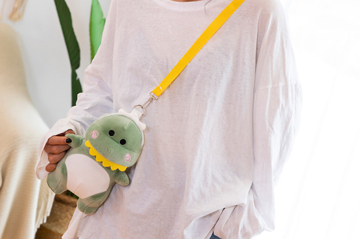 ▶名稱/毛絨絨恐龍娃娃×斜背包×粉紅