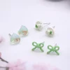 閱讀全文▶名稱/蝴蝶結小花愛心×三套件耳環組×綠色