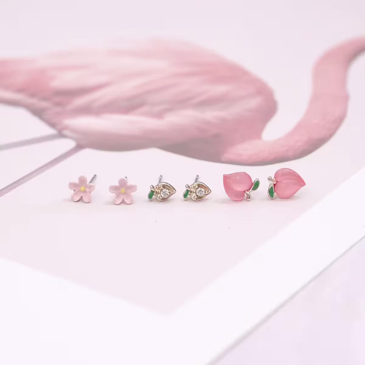 閱讀全文▶名稱/粉紅蜜桃小花×三套件耳環組
