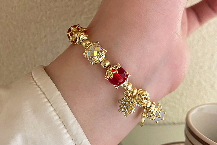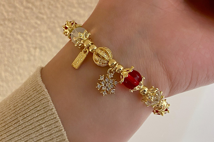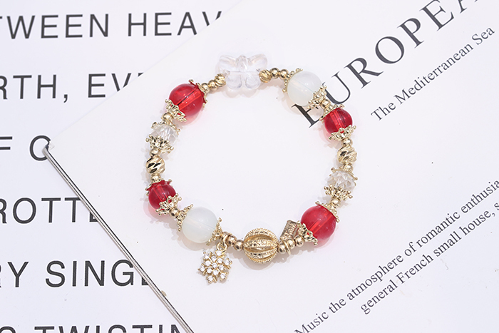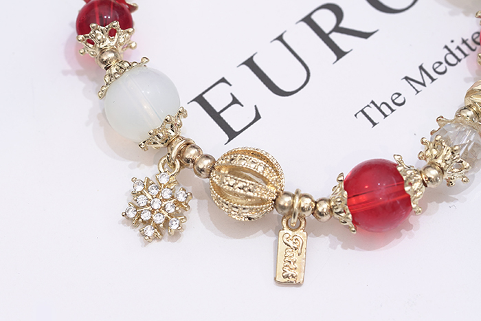 ▶名稱/聖誕雪花紅金琉璃×固定式串珠手鍊