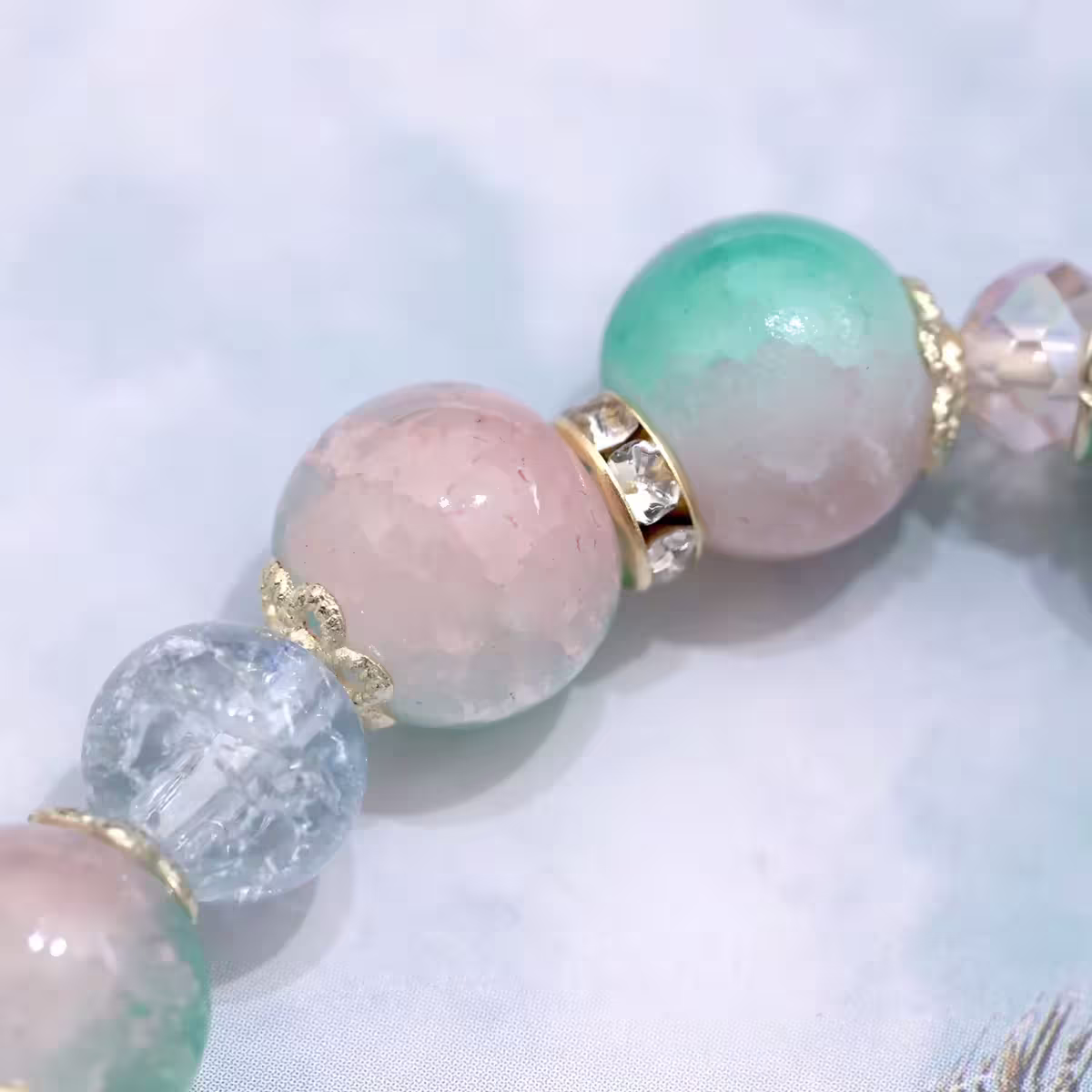 ▶名稱/仙藍粉嫩晶透水滴×固定式串珠手鍊