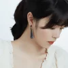 ▶名稱/霧霾藍黑木頭三角×不對稱三角耳夾