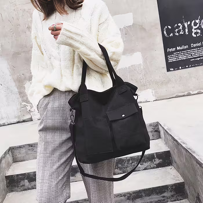 ▶名稱/大容量口袋帆布袋×斜背包×黑色