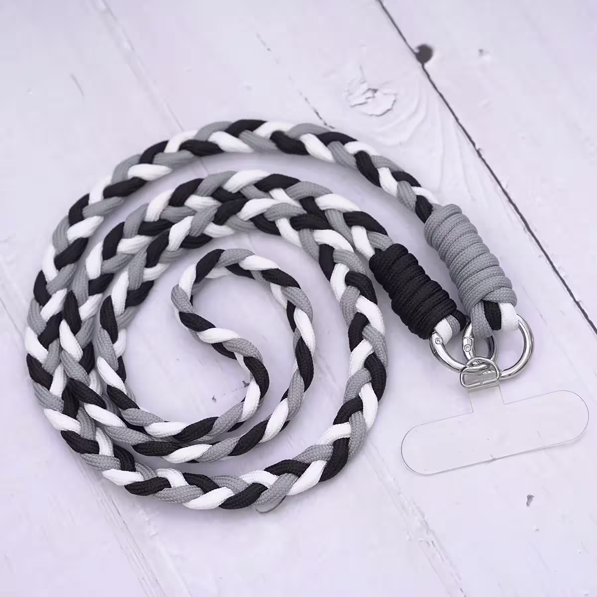 ▶名稱/撞色麻花辮×手機斜背雙勾掛繩×黑白