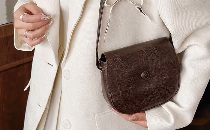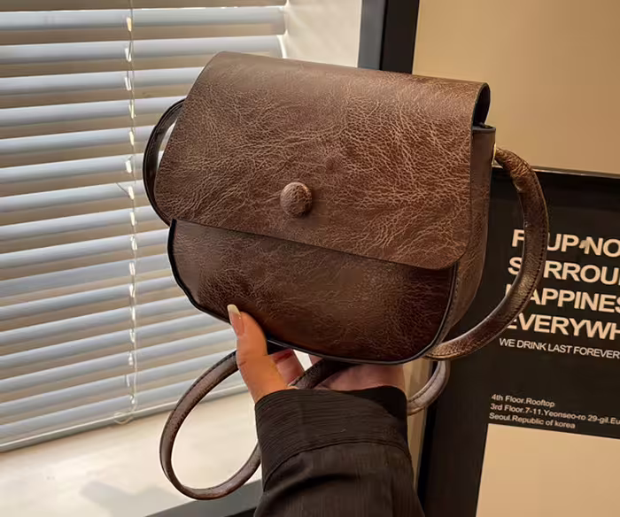 ▶名稱/復古彷牛皮小馬鞍×斜背包×咖啡