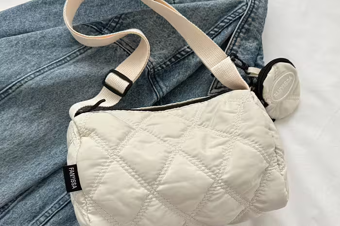 ▶名稱/菱格紋枕頭包(附零錢包)×斜背包×黑色