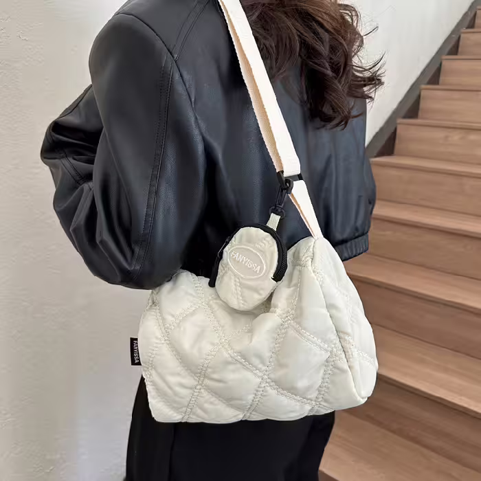 ▶名稱/菱格紋枕頭包(附零錢包)×斜背包×白